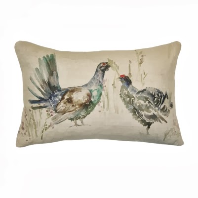 Kuddar med motiv av tjäder, ripa och fasan